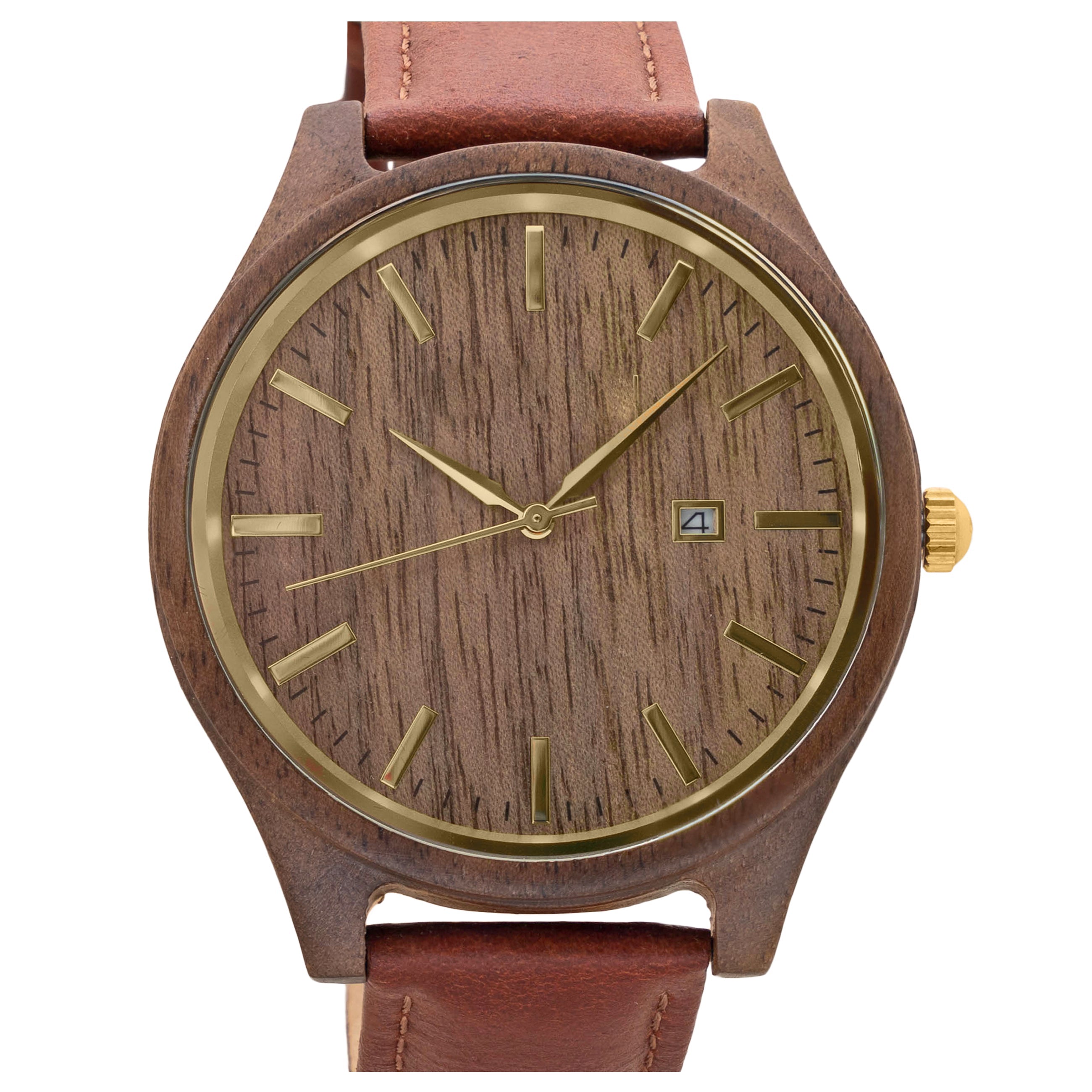 The Benson Walnut wooden watch mixes the functionality of a chronograph with the sleek design of a gentleman's timepiece. Our newest design features a Walnut 1.75” casing and the complimentary leather band made for comfortable everyday wear. The style-forward design is matched by its functionality. A reliable Miyota 2115 movement, simple notch dial indicators, and a calendar card are built for everyday carry.