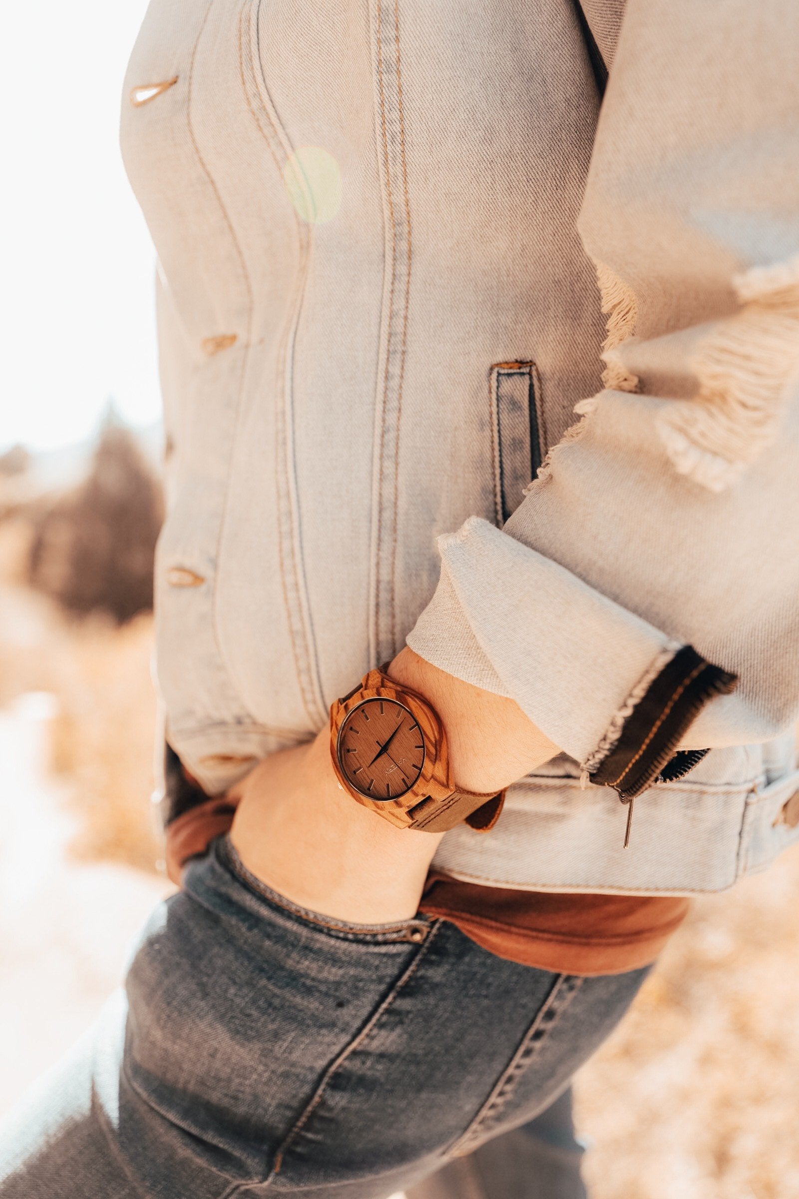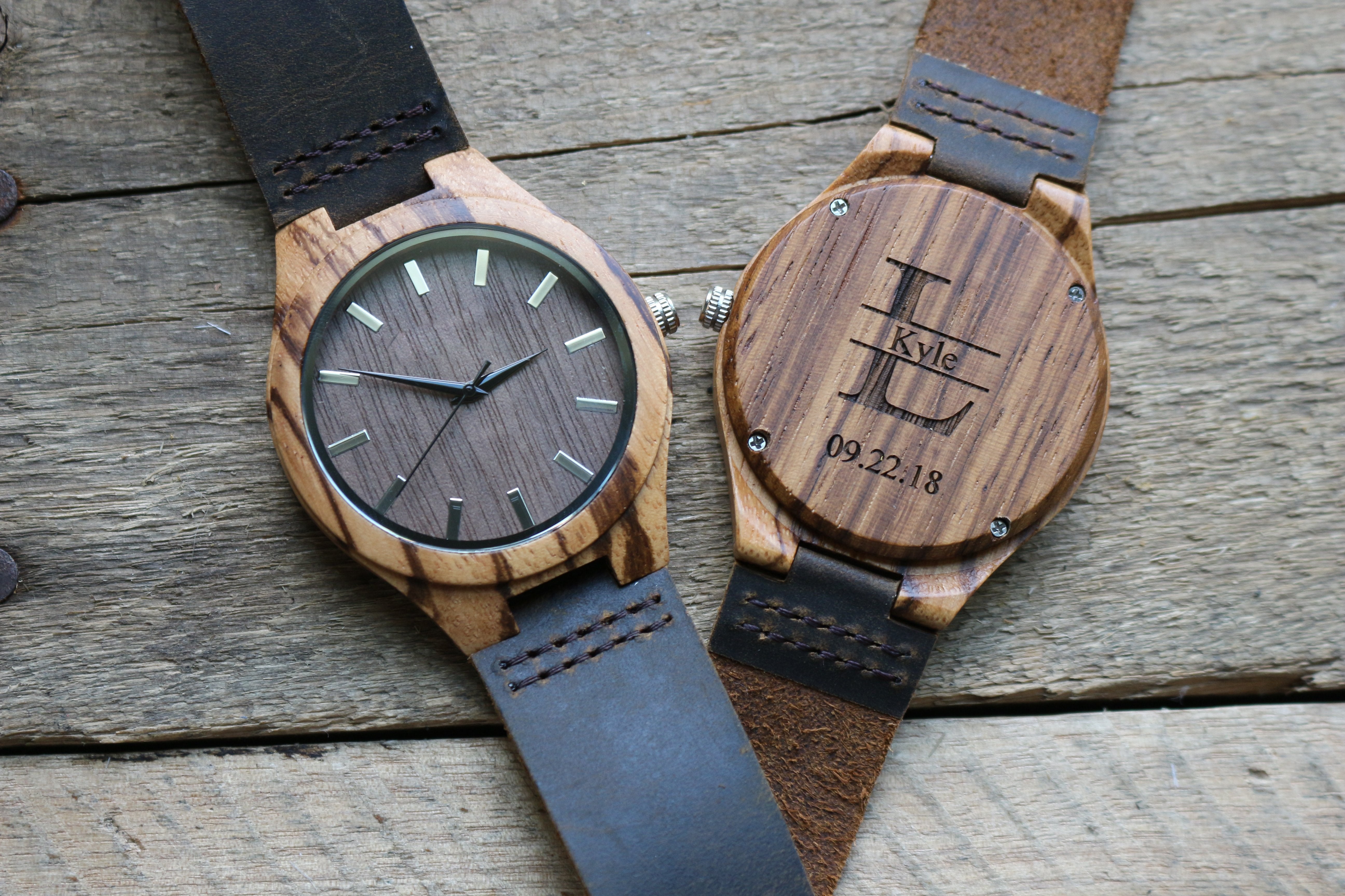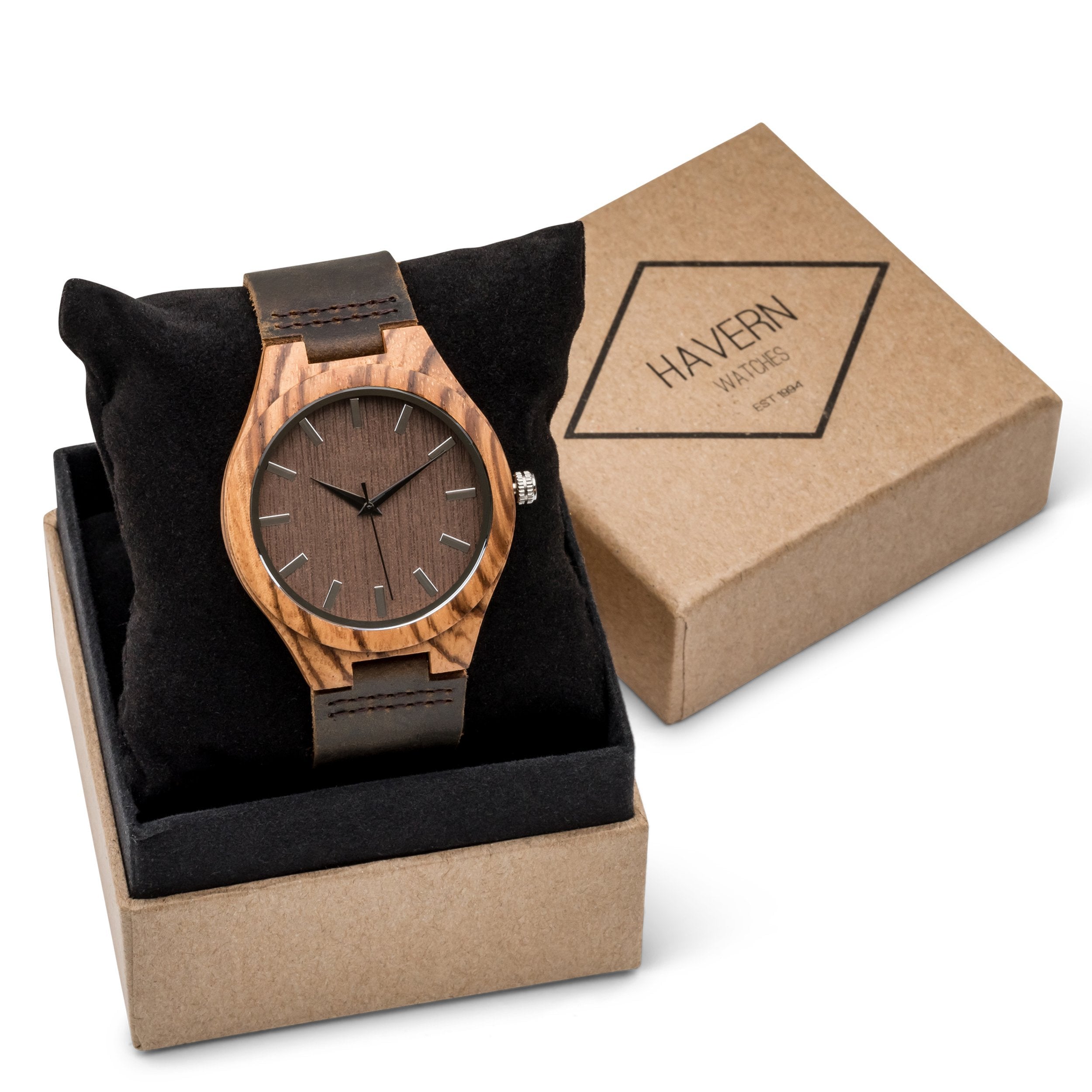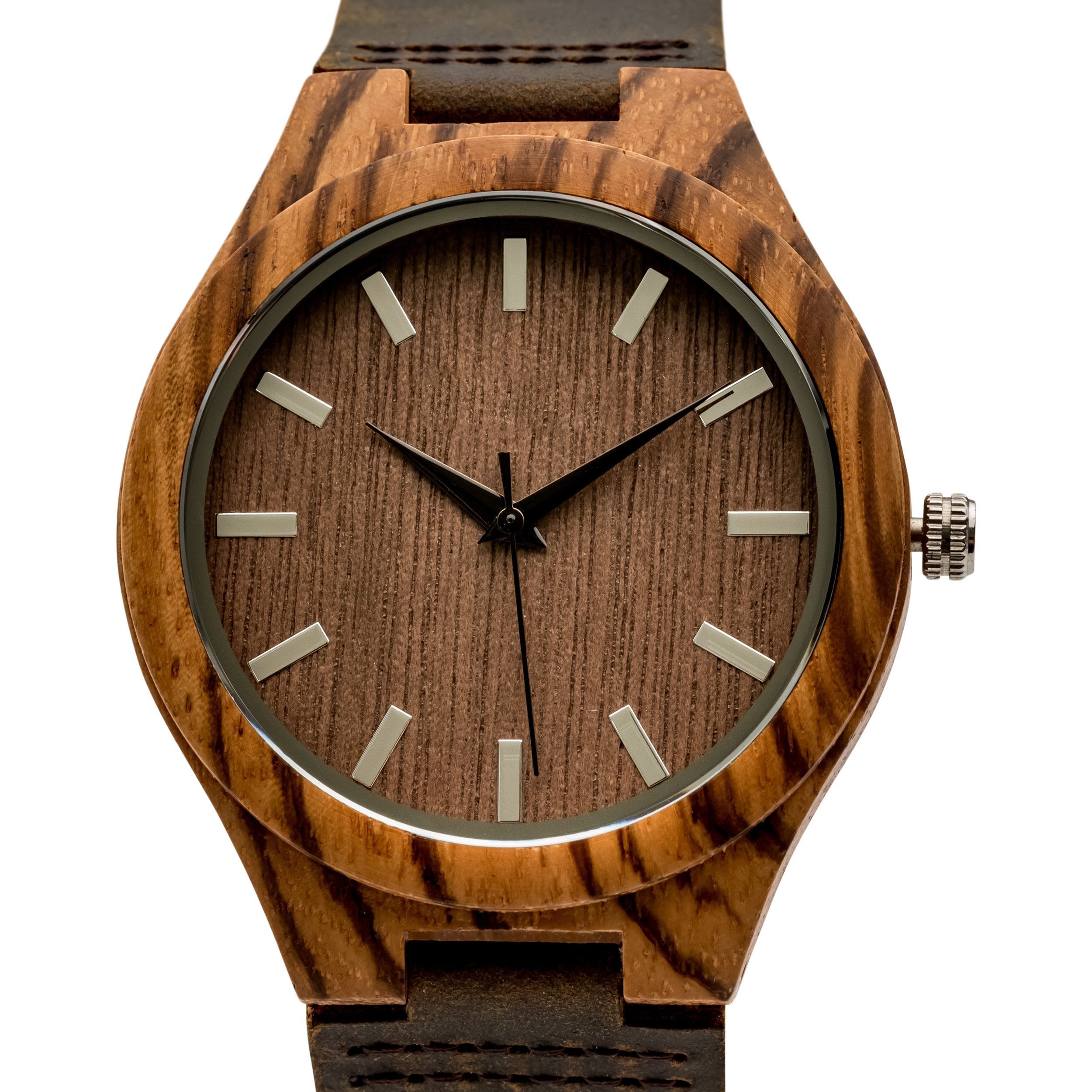 The Olympic Zebrawood wooden watch pairs rich natural textures with the effortless simplicity of modern design. Crafted from a single piece of zebrawood, this watch is finished with a genuine brown leather band to create a sleek high-contrast look. Its style-forward design is matched by superior function: reliable quartz movement and bold dial markers are built for elite performance. Add custom engraving to your Olympic watch to create the perfect gift for any occasion. For added impact, upload a photo of your handwritten message to make your gift truly unique.