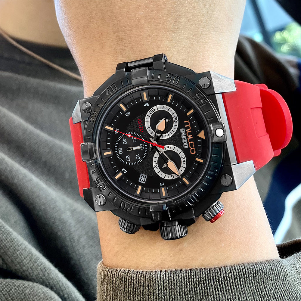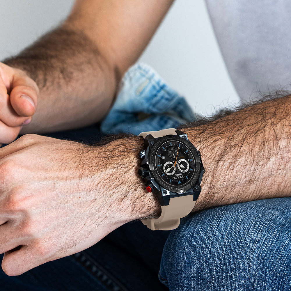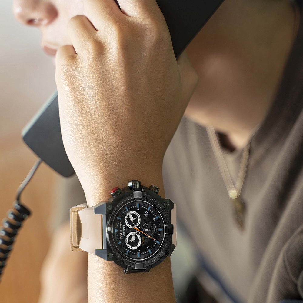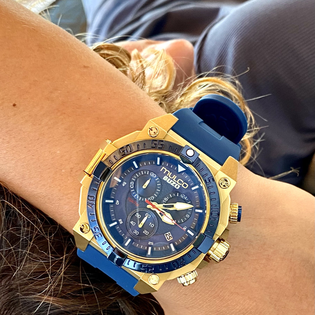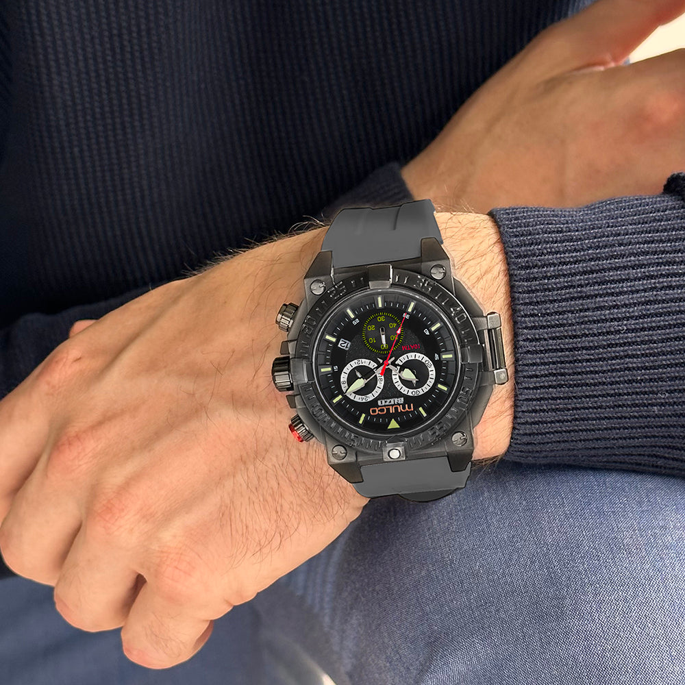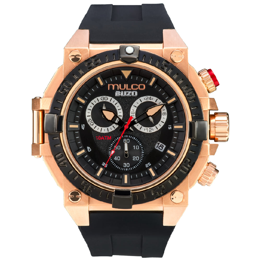 Mulco Buzo Dive Silicone watch is perfect for water adventures with its elegant and adventurous style. It has 10 ATM water resistance and features Chronograph movement.