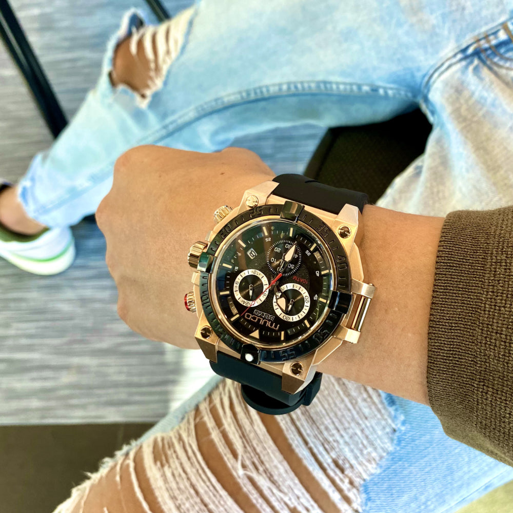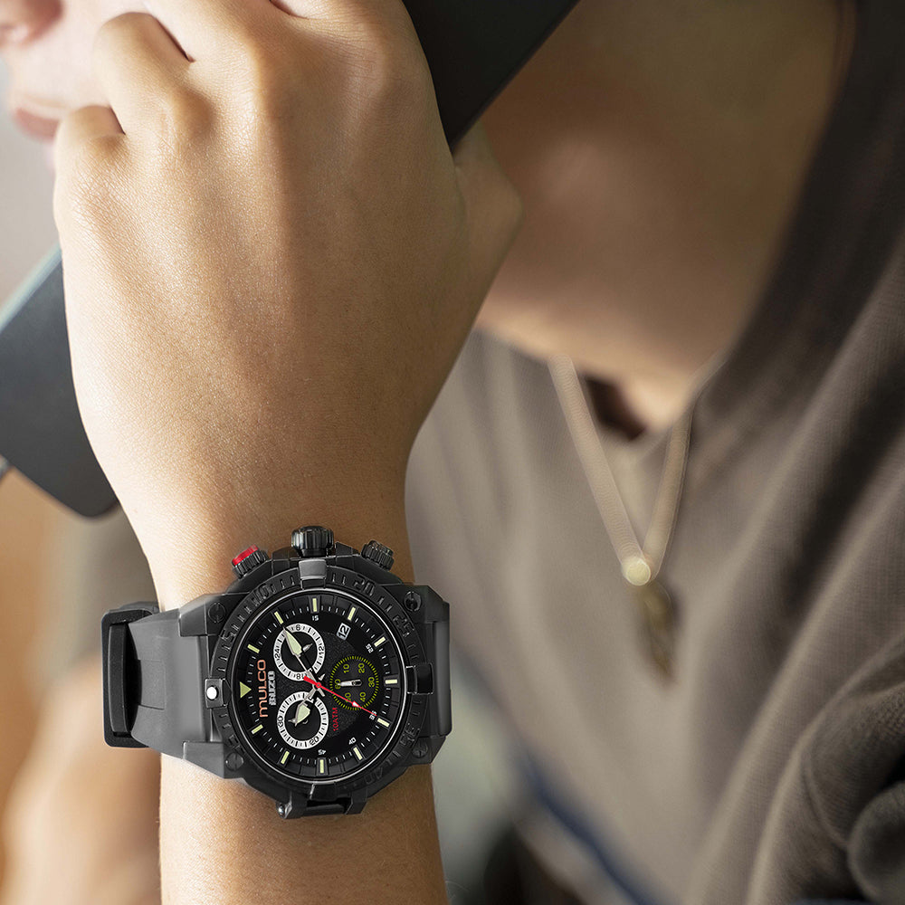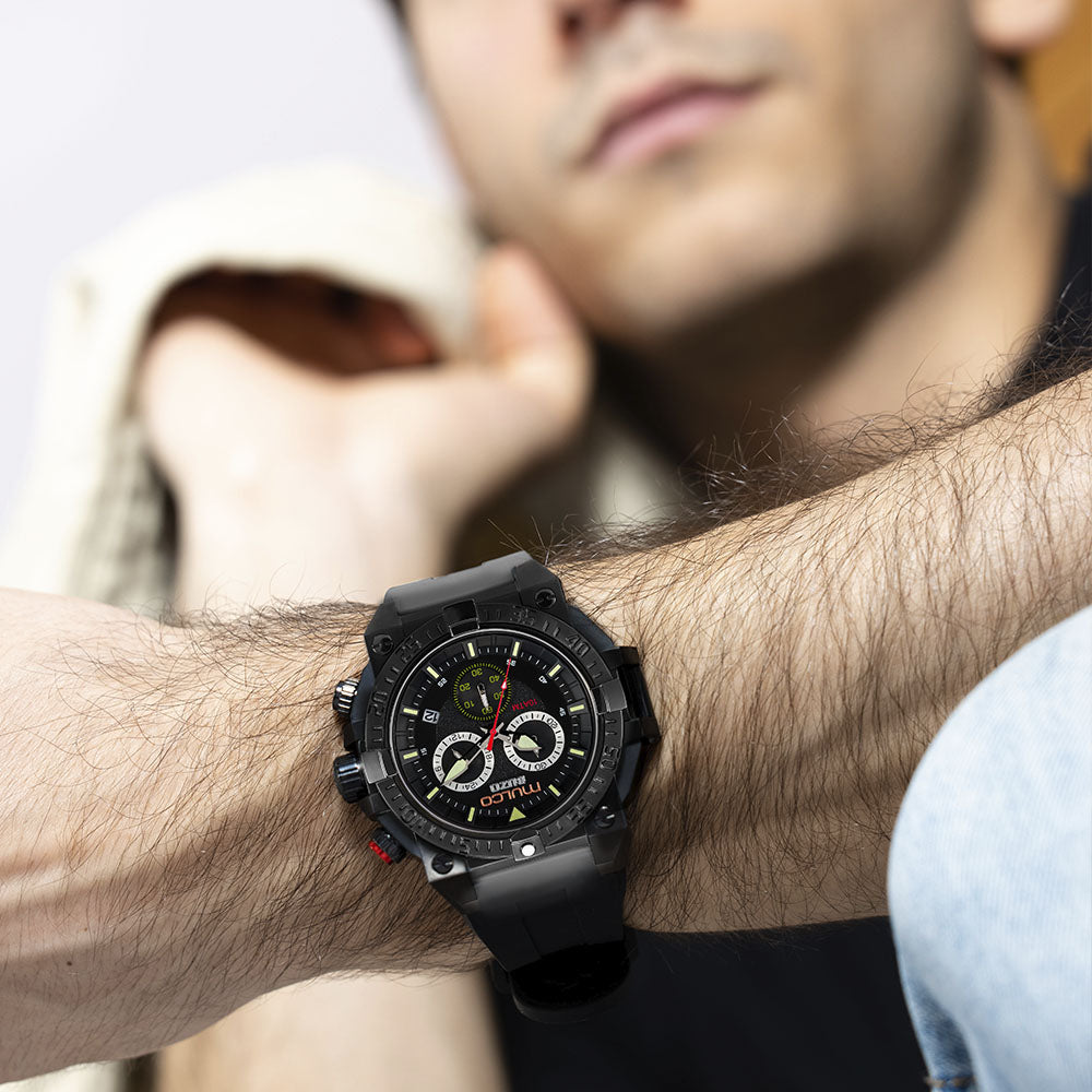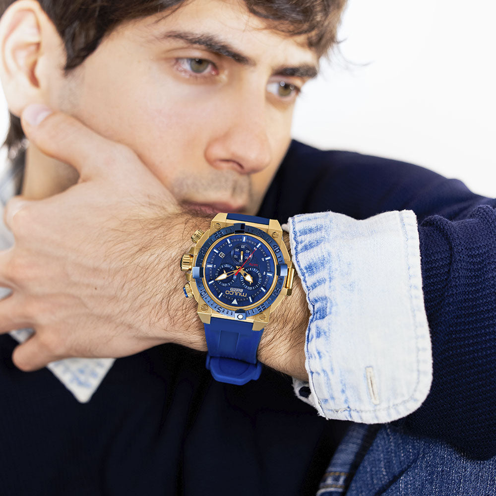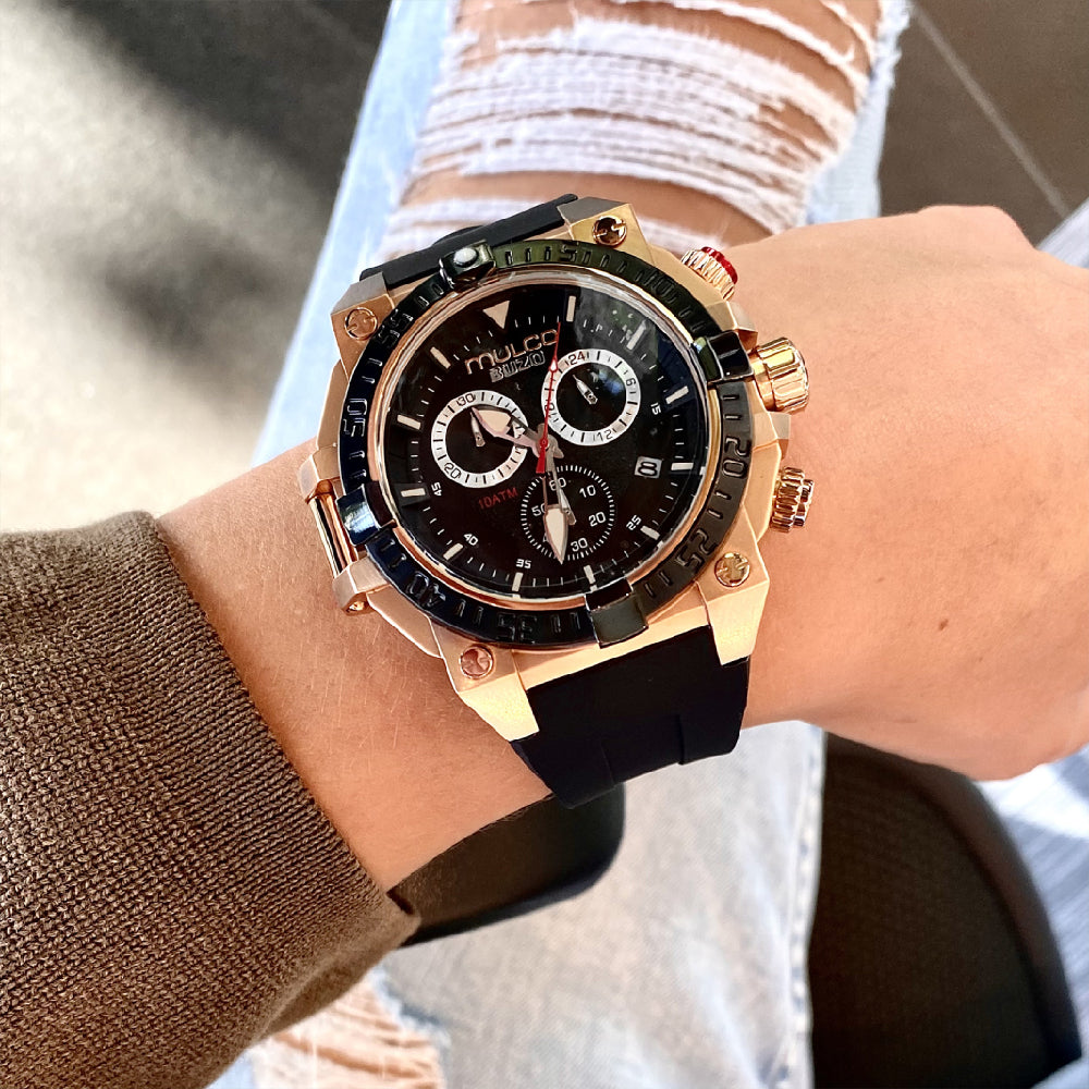 Mulco Buzo Dive Silicone watch is perfect for water adventures with its elegant and adventurous style. It has 10 ATM water resistance and features Chronograph movement.