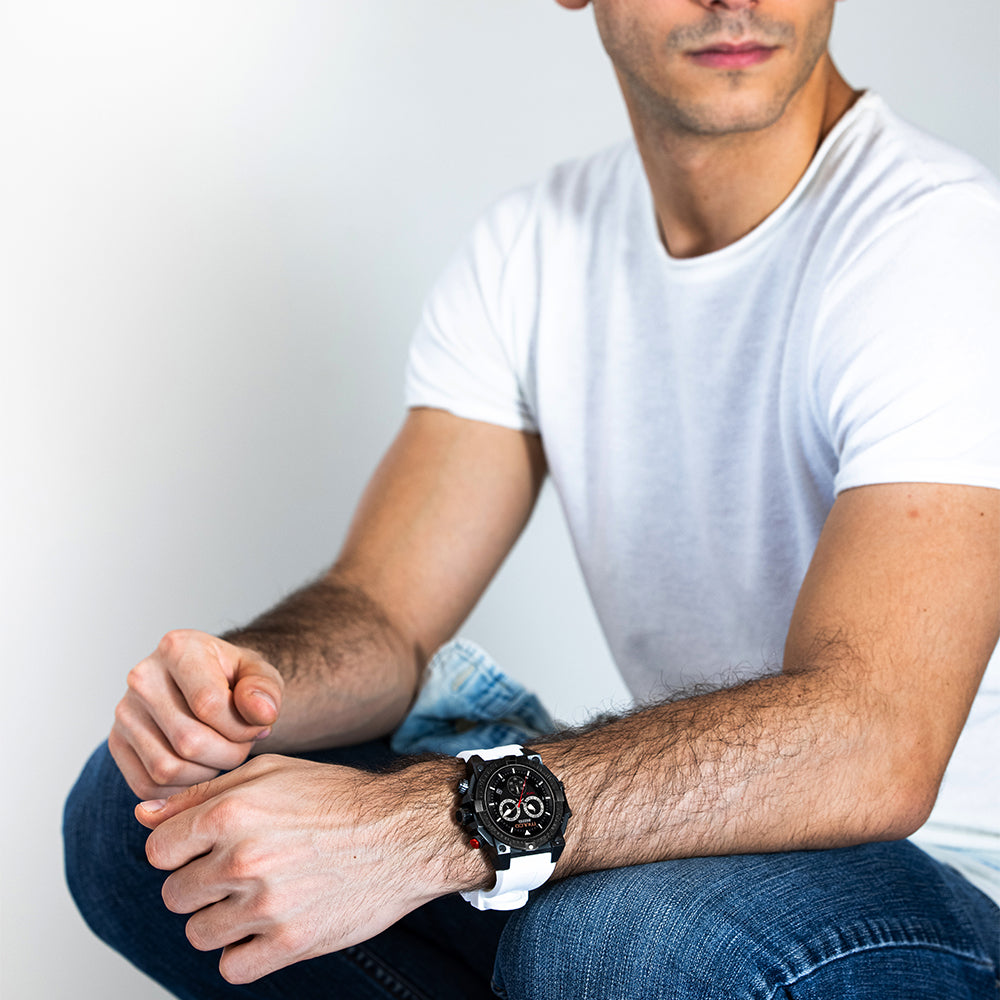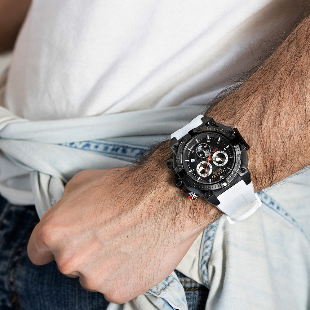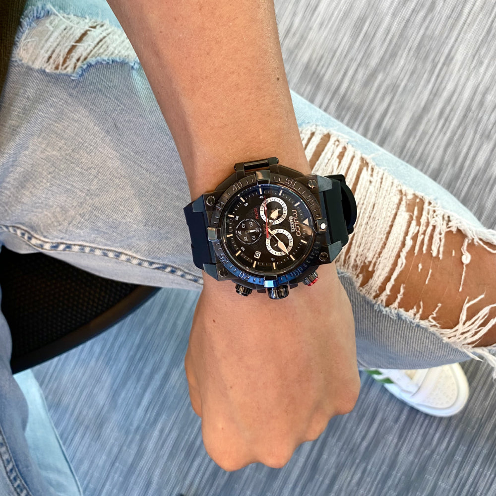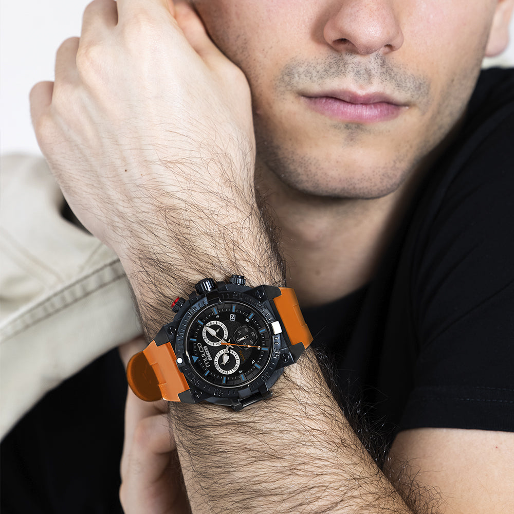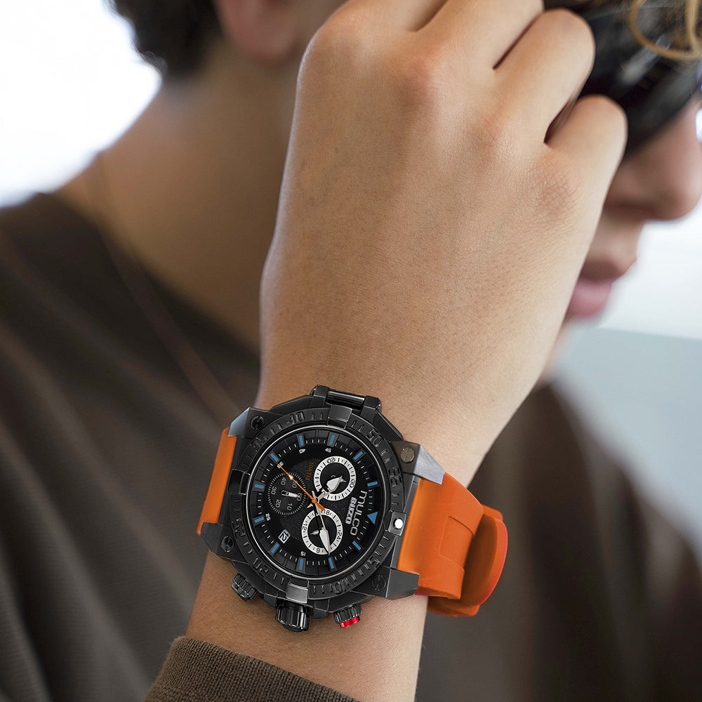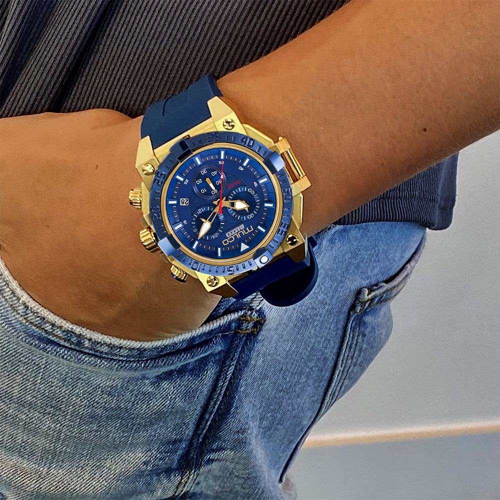 Mulco Buzo Dive Silicone watch is perfect for water adventures with its elegant and adventurous style. It has 10 ATM water resistance and features Chronograph movement.