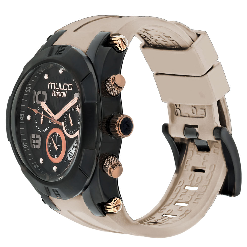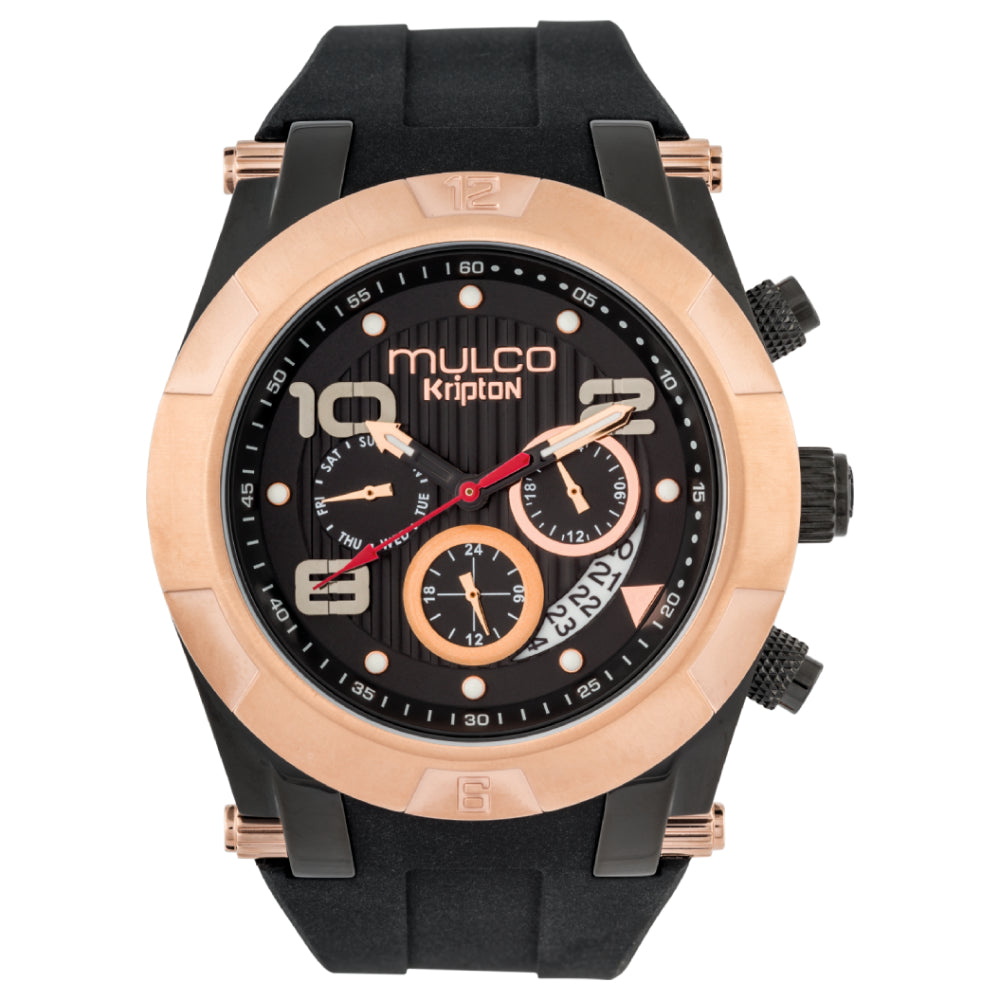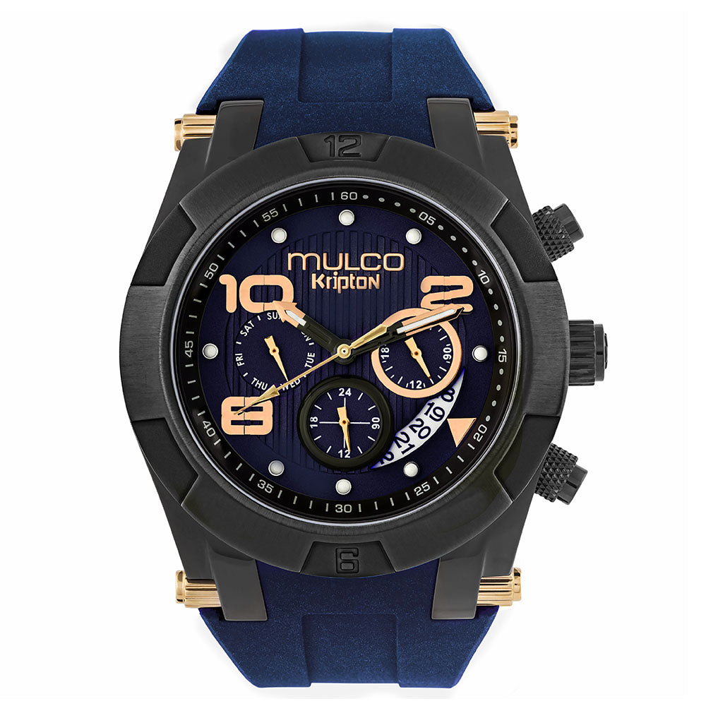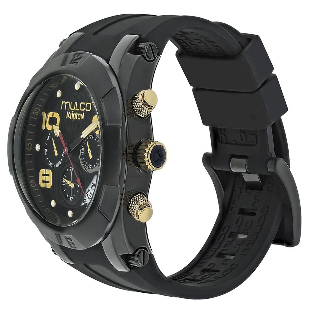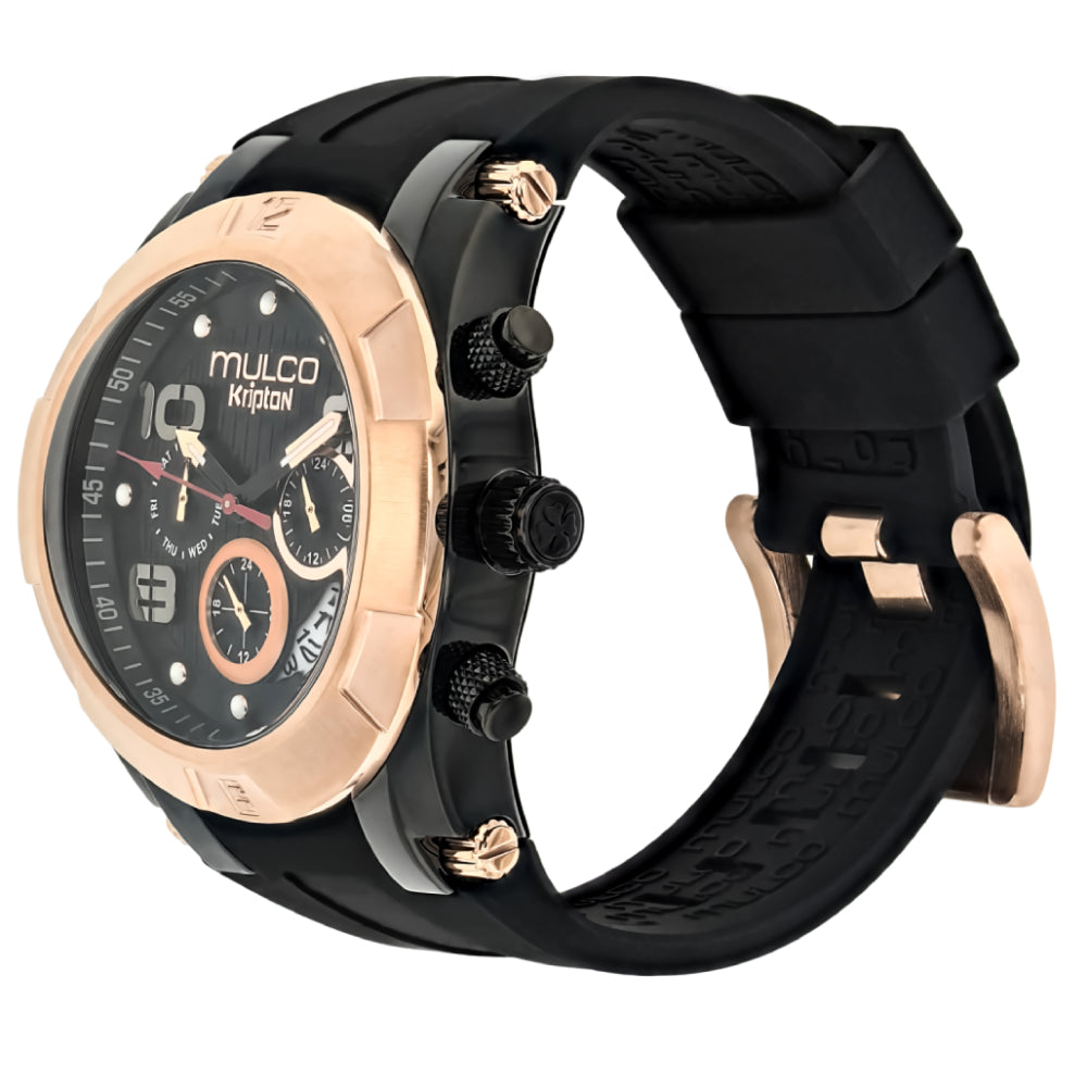 Mulco's Kripton Viper men's watch is high quality, water-resistant up to 100m, and features a semicircular date window and a curved case that fits comfortably on the wrist.