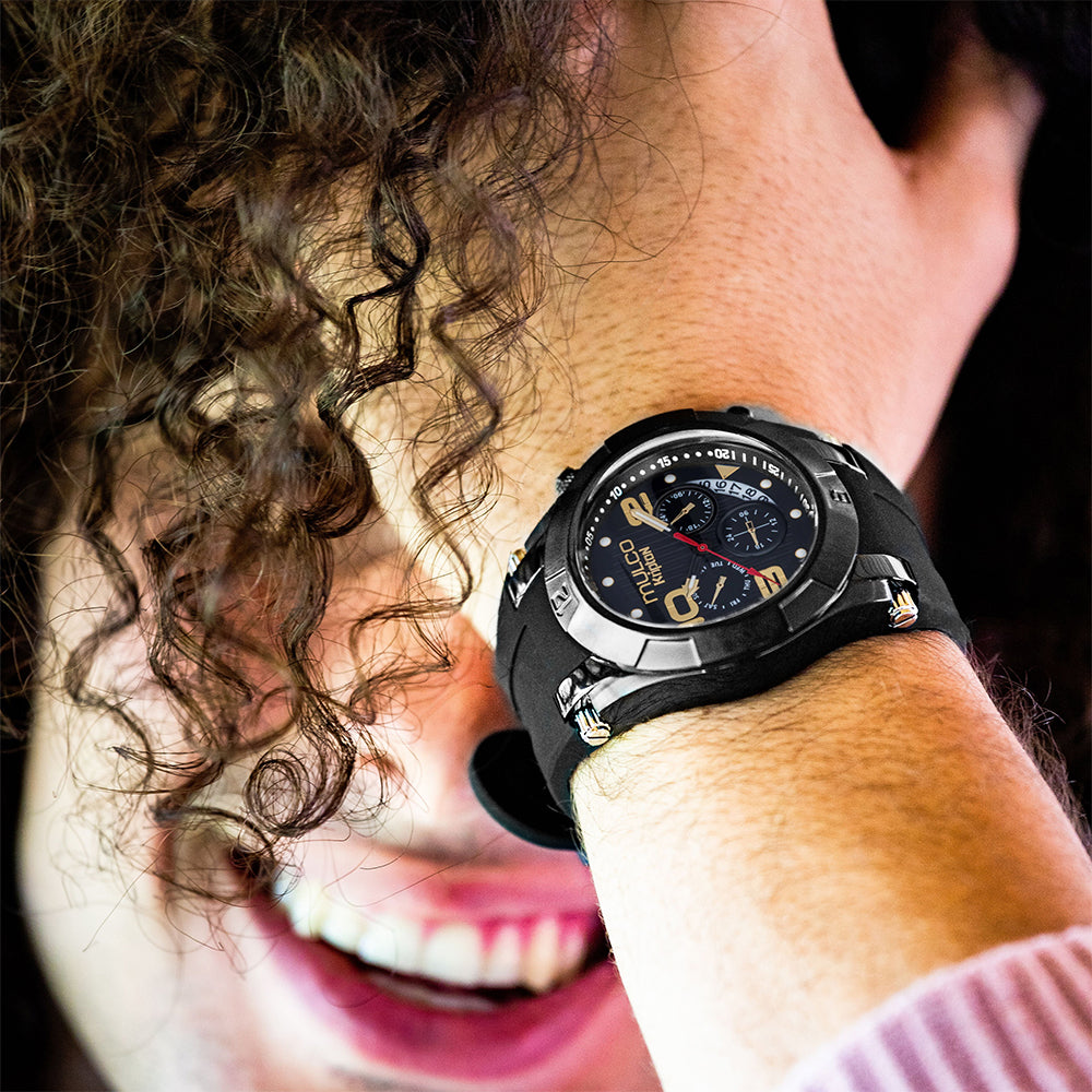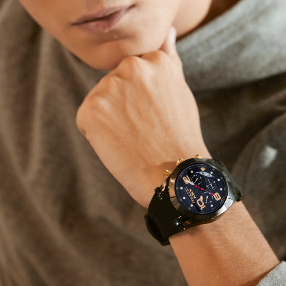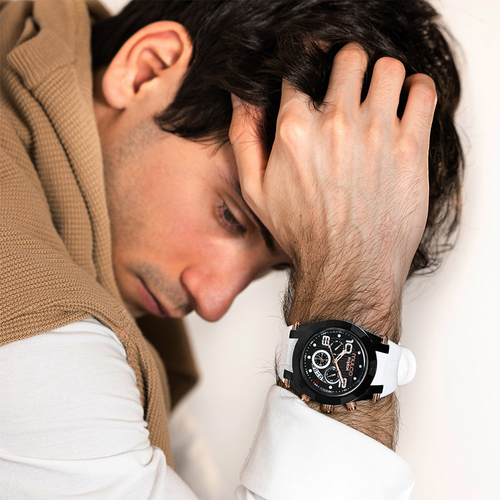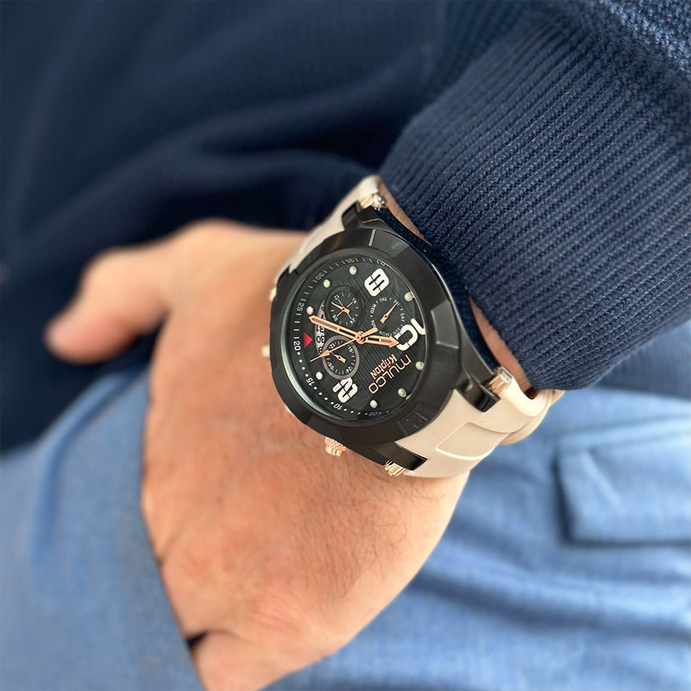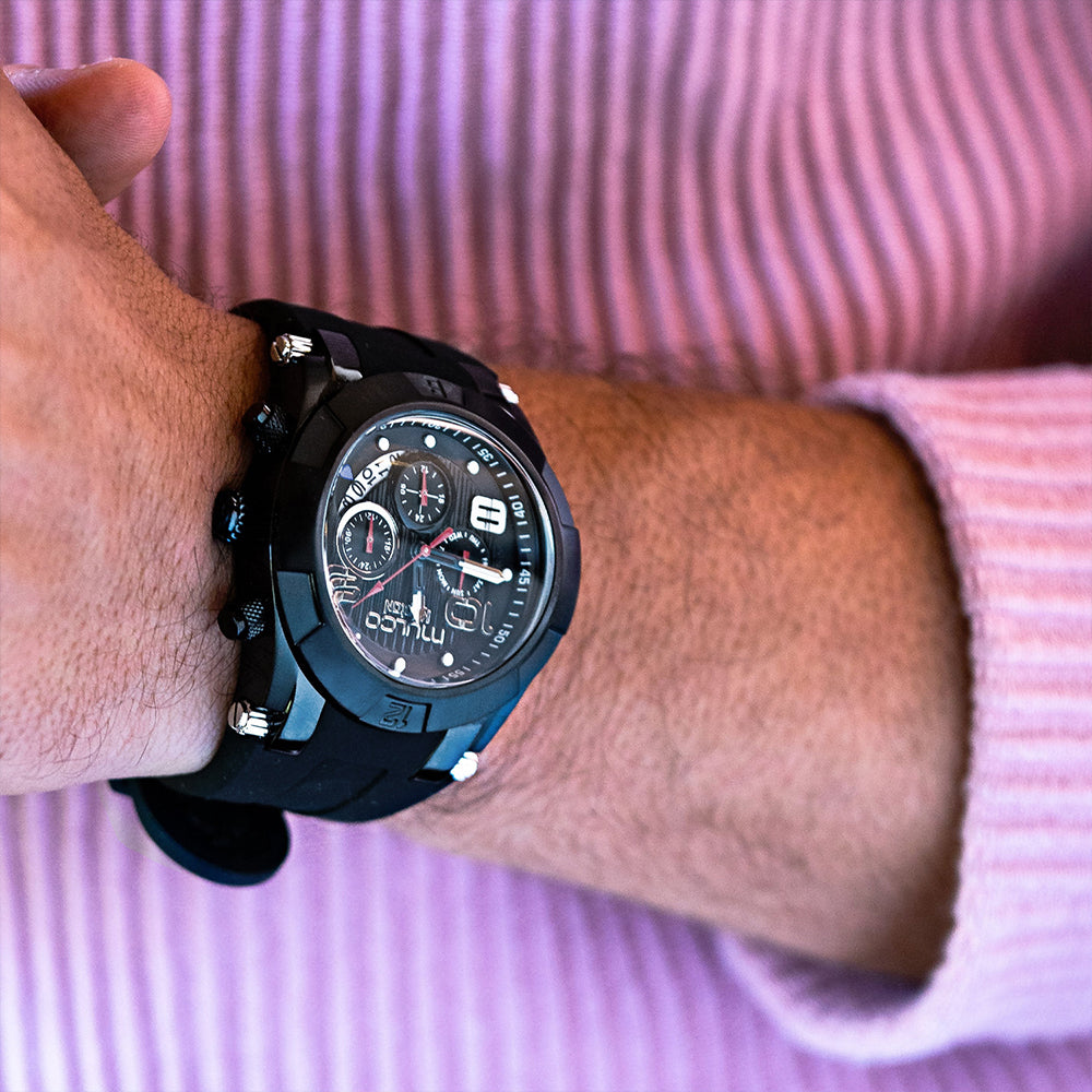 Mulco's Kripton Viper men's watch is high quality, water-resistant up to 100m, and features a semicircular date window and a curved case that fits comfortably on the wrist.