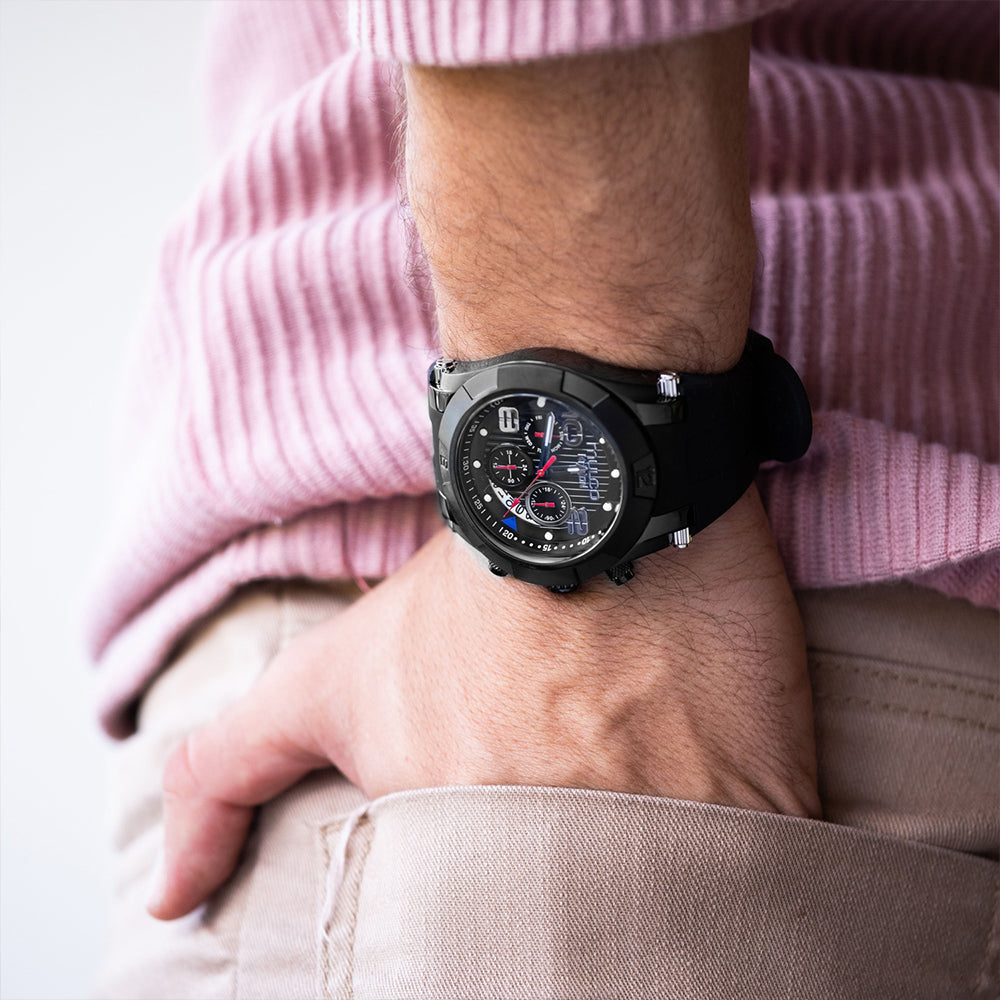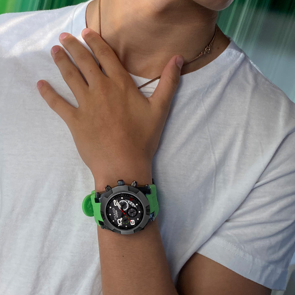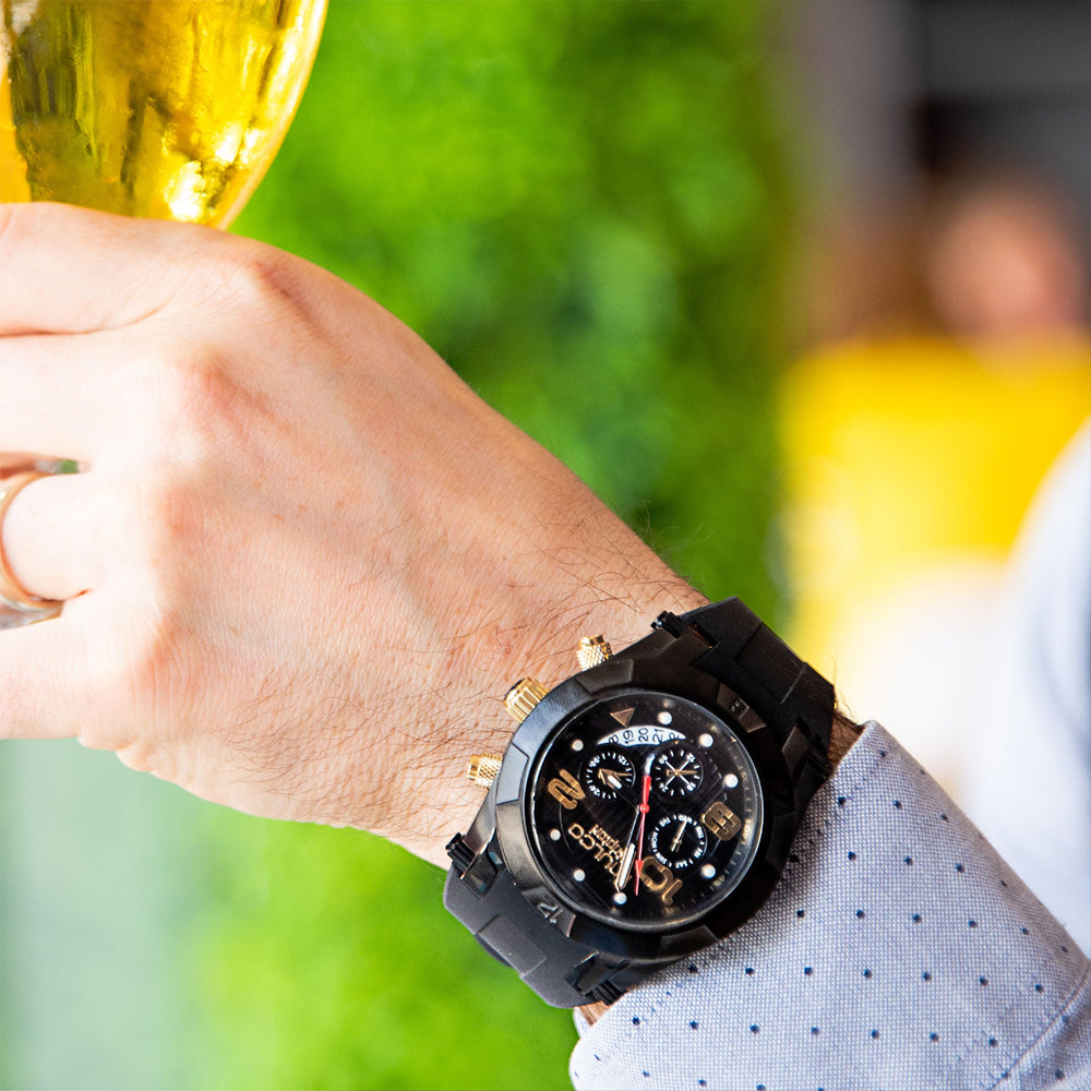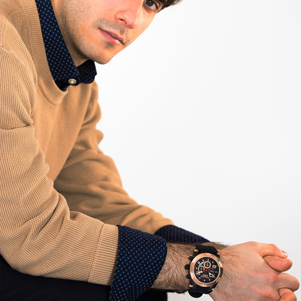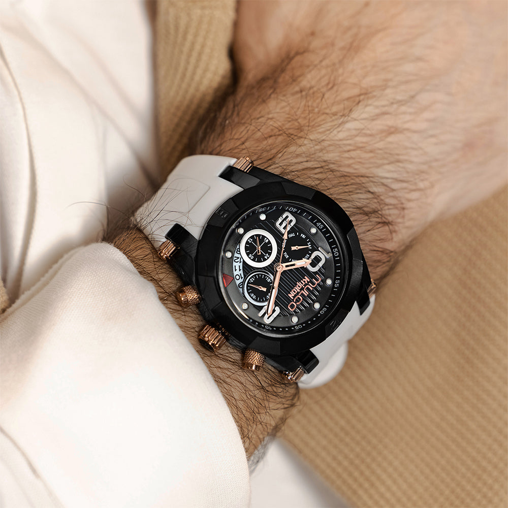 Mulco's Kripton Viper men's watch is high quality, water-resistant up to 100m, and features a semicircular date window and a curved case that fits comfortably on the wrist.
