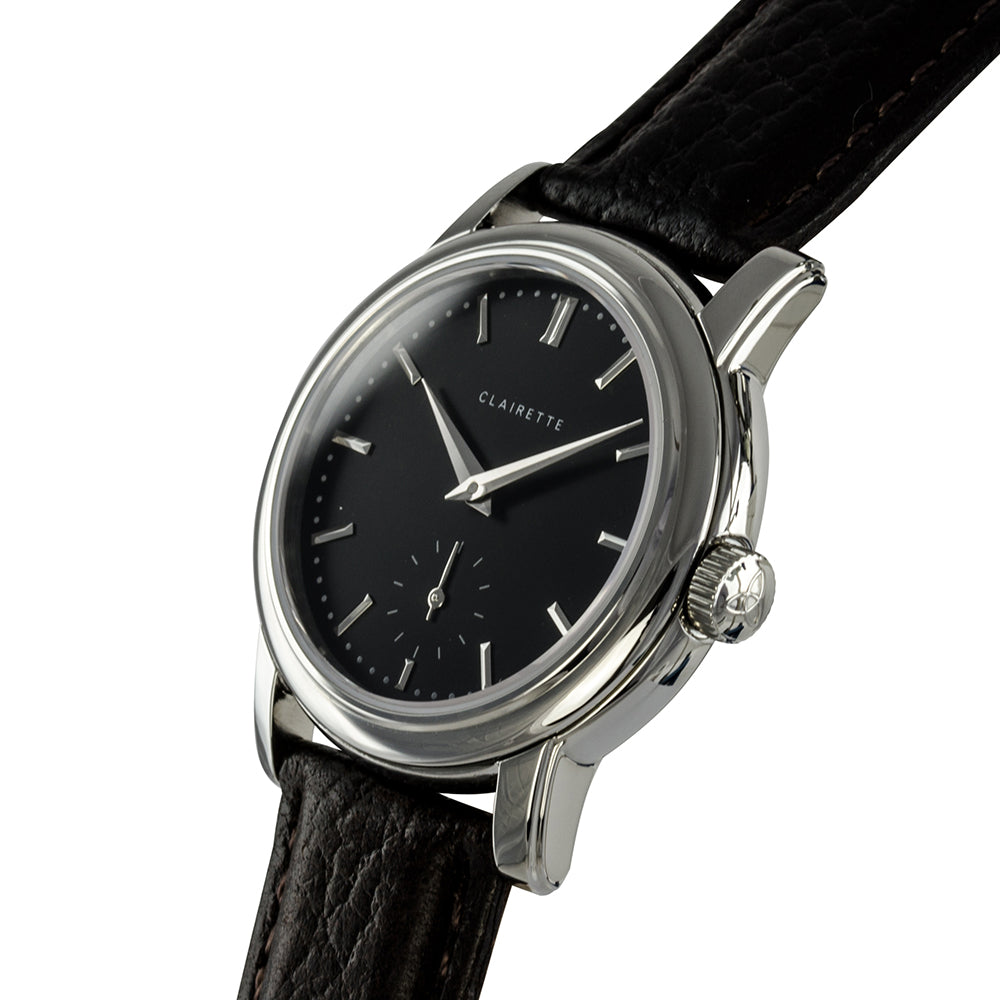 Klockan är inspirerad av designelement som du hittar i klockor från mitten av seklet, som ibland kallas klockdesignens belle époque. En lite mindre urtavla skapar tillsammans med de rundade kanterna en välbalanserad klocka för alla handledsstorlekar.