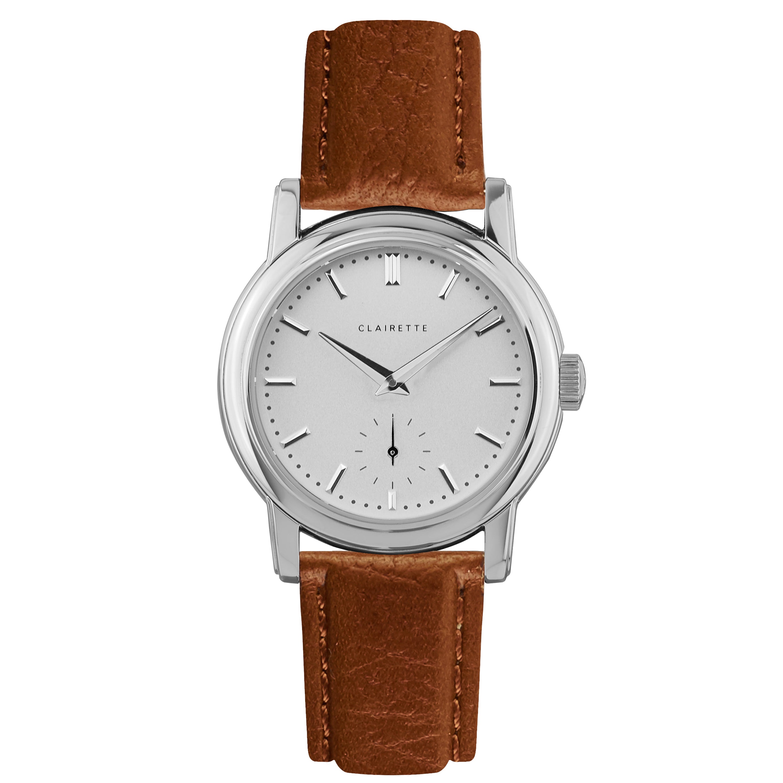 • Damklocka i rostfritt stål med vit urtavla och cognacarmband