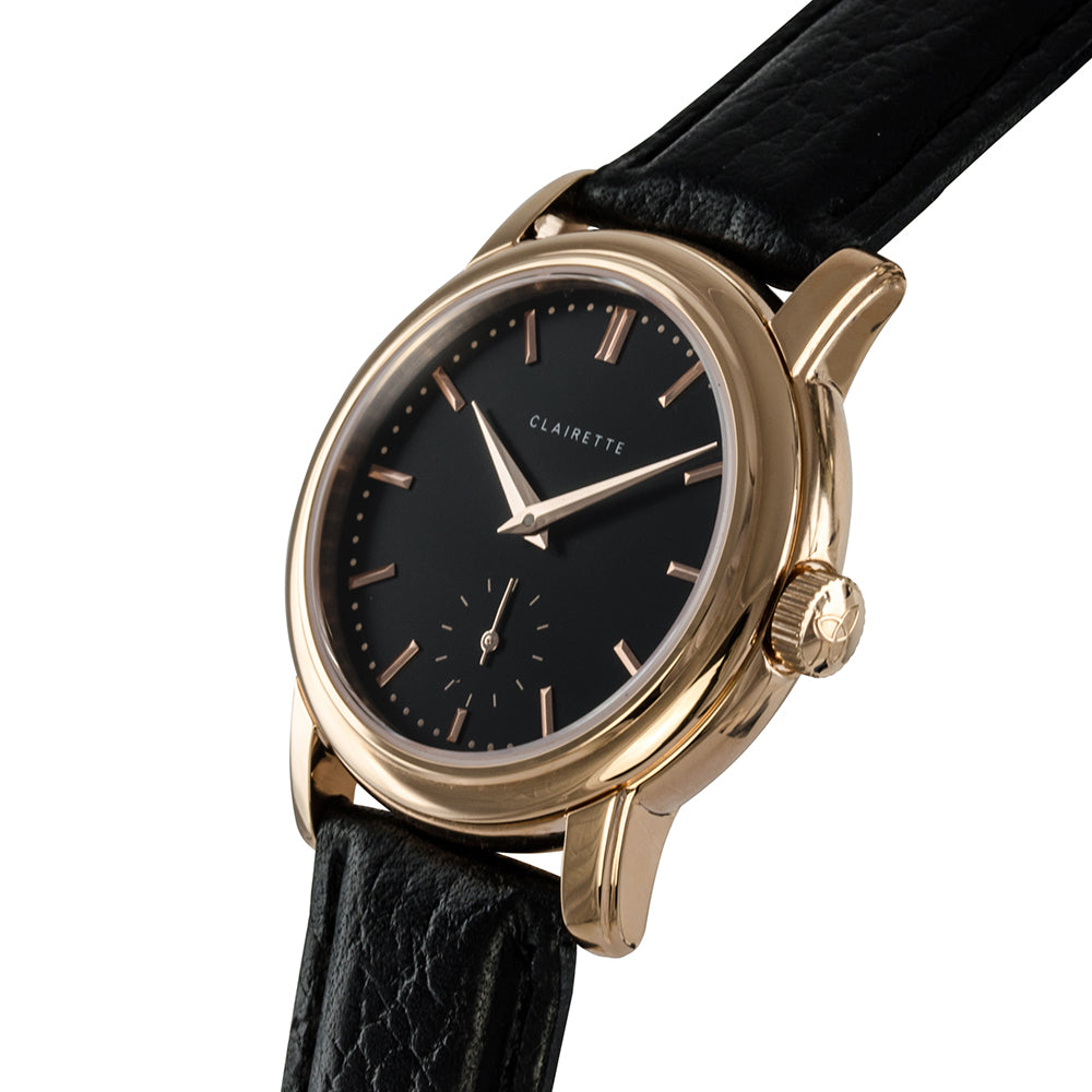 Klockan är inspirerad av designelement som du hittar i klockor från mitten av seklet, som ibland kallas klockdesignens belle époque. En lite mindre urtavla skapar tillsammans med de rundade kanterna en välbalanserad klocka för alla handledsstorlekar.