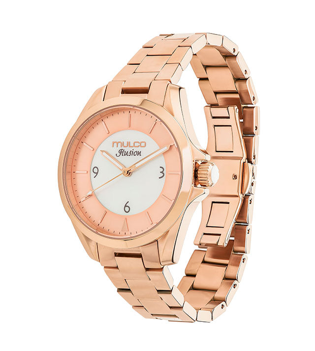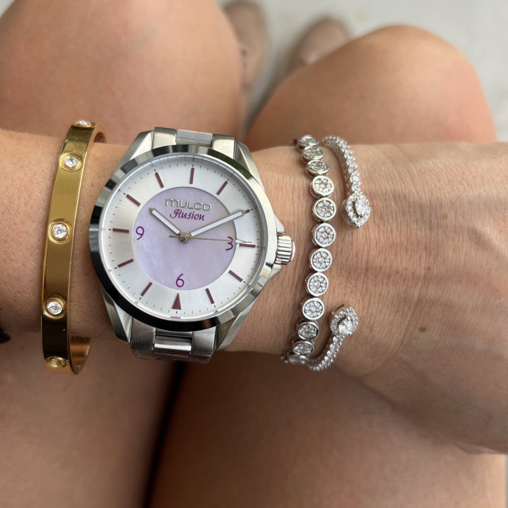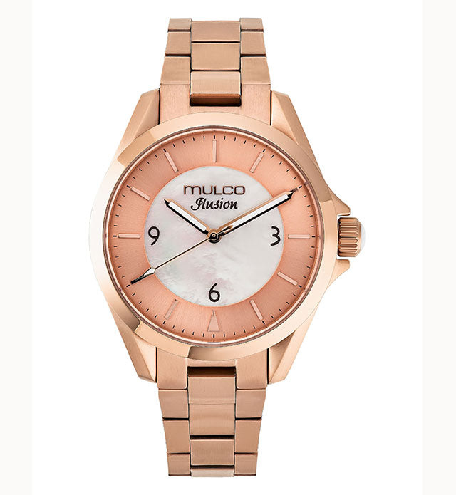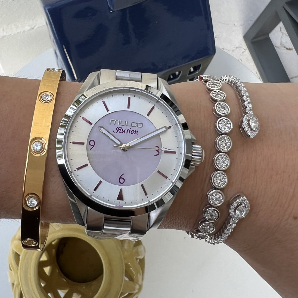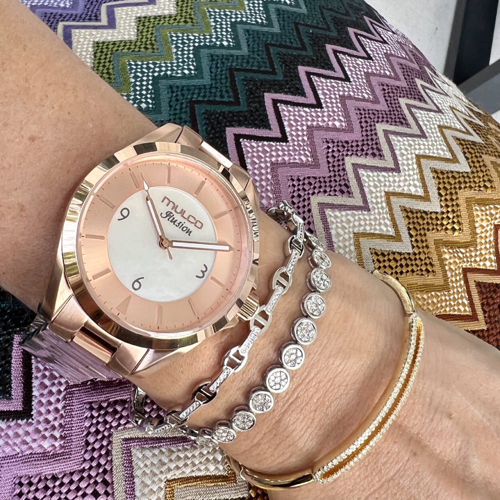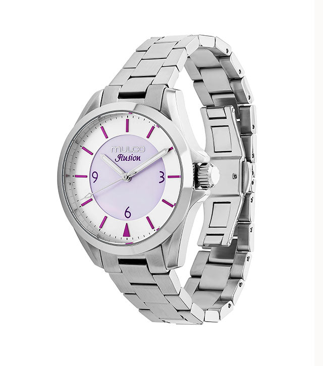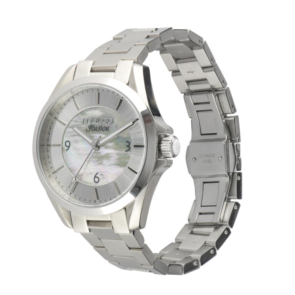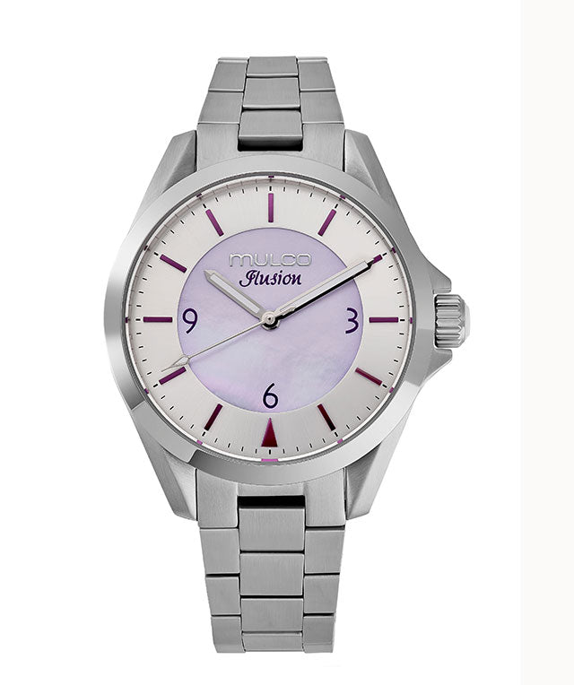 Mulco Illusion Lady Quartz watches for women is a sleek and reliable daily companion. The rich mother-of-pearl sundial, stainless steel construction, and water resistance make it perfect for everyday wear.