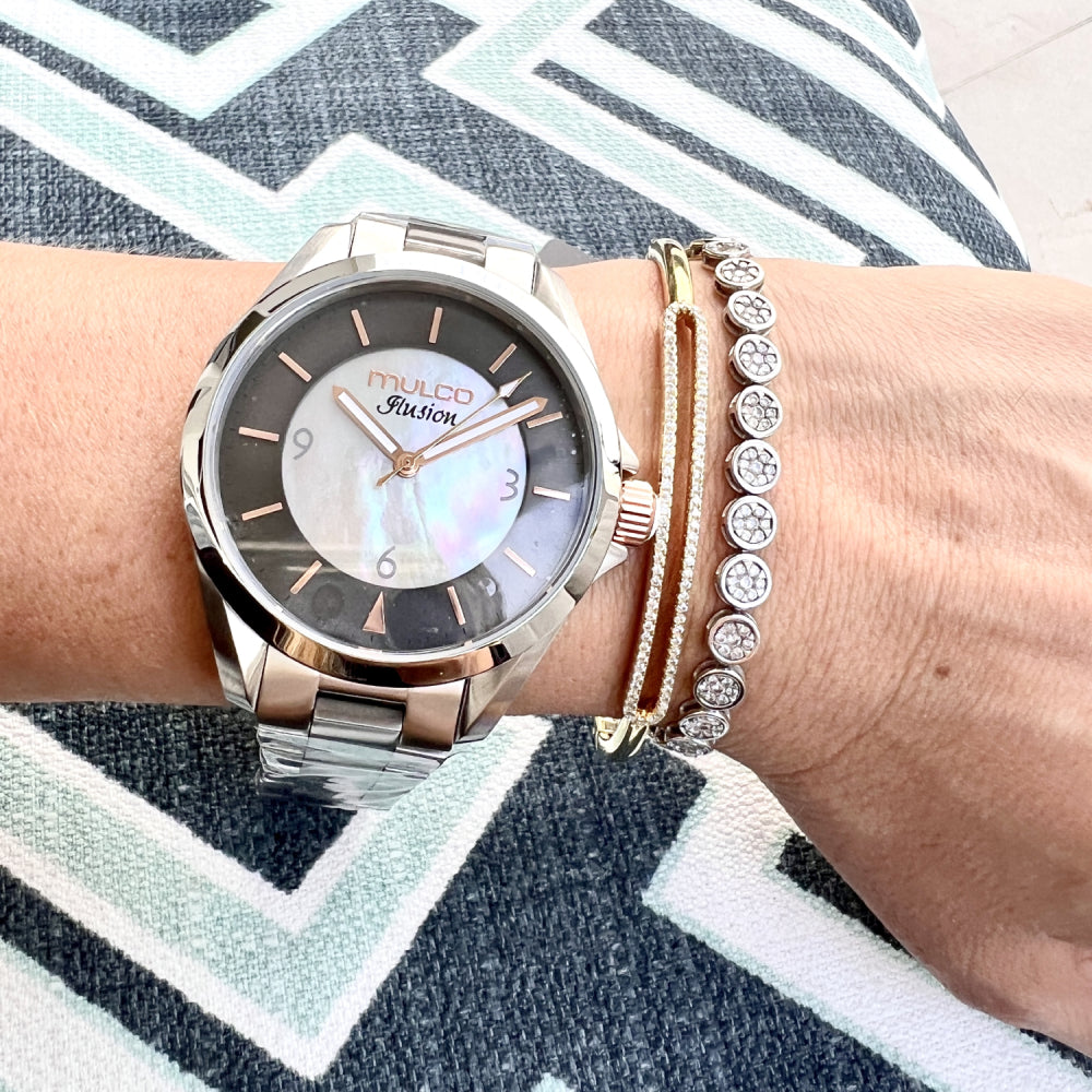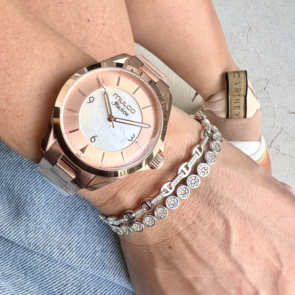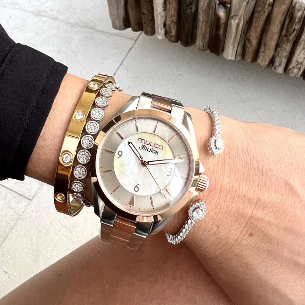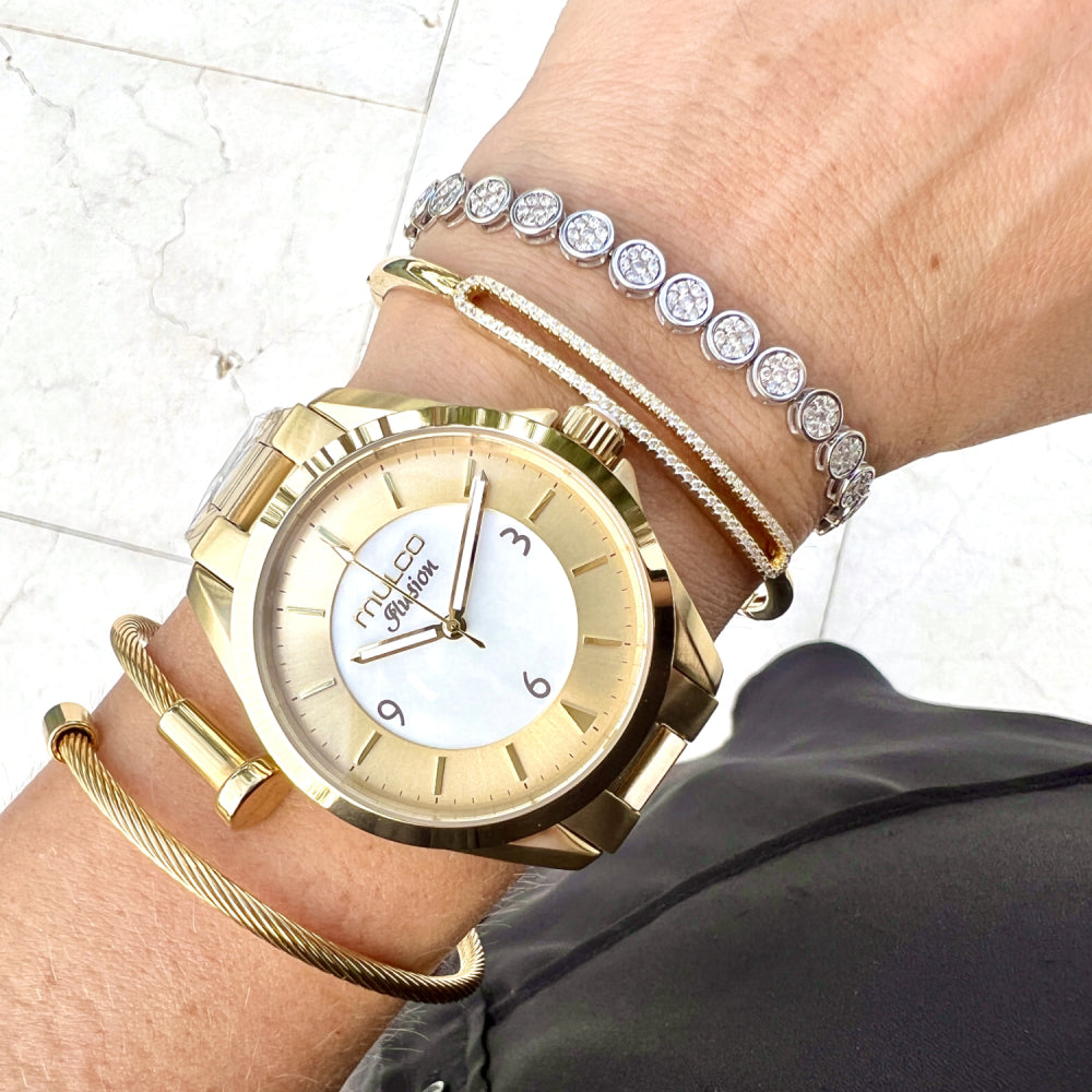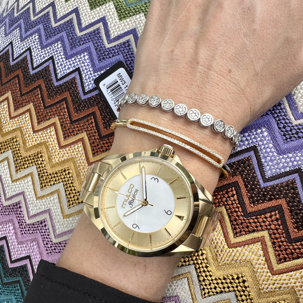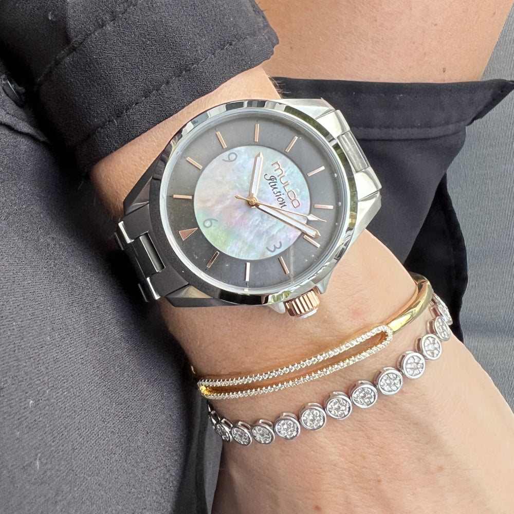 Mulco Illusion Lady Quartz watches for women is a sleek and reliable daily companion. The rich mother-of-pearl sundial, stainless steel construction, and water resistance make it perfect for everyday wear.