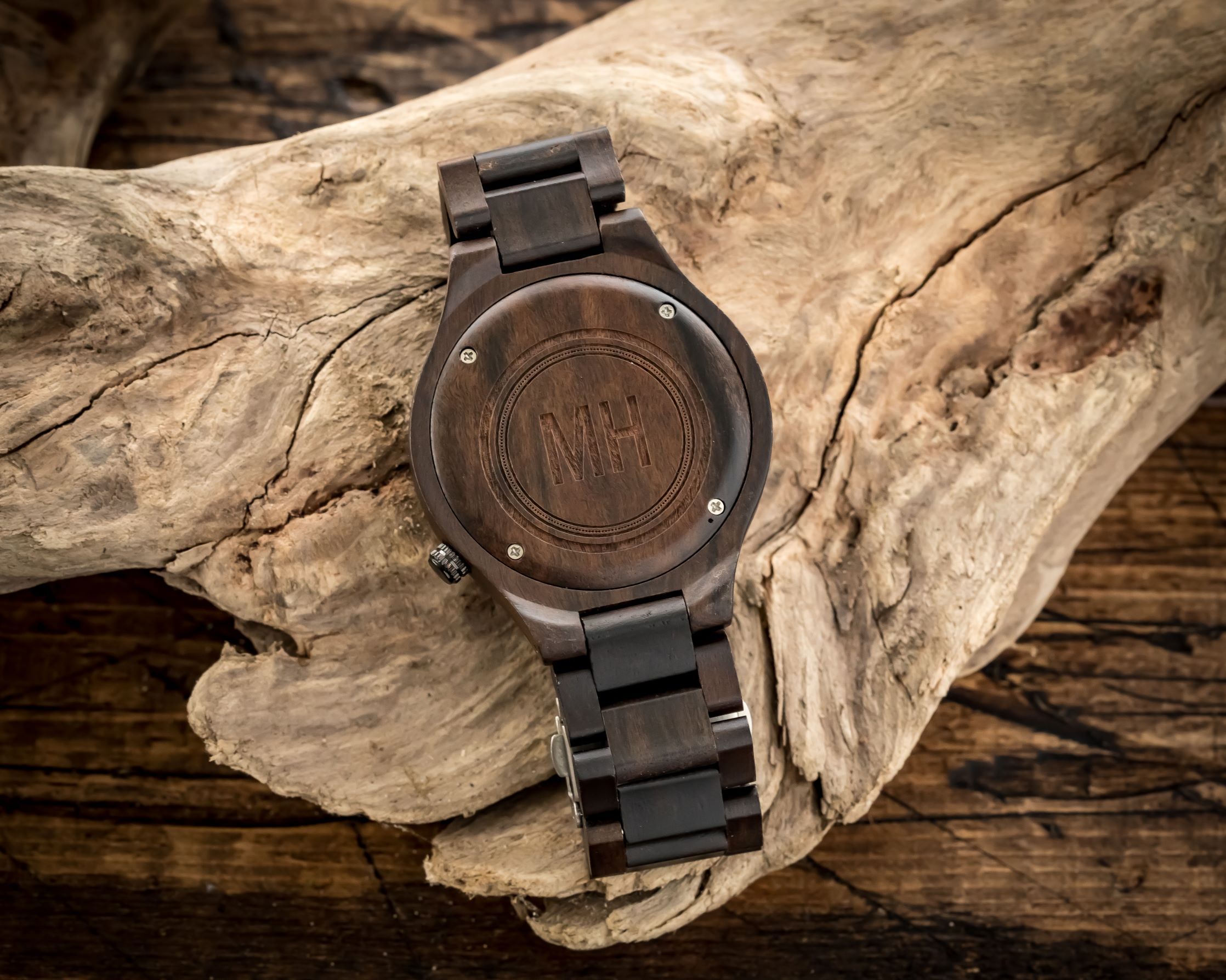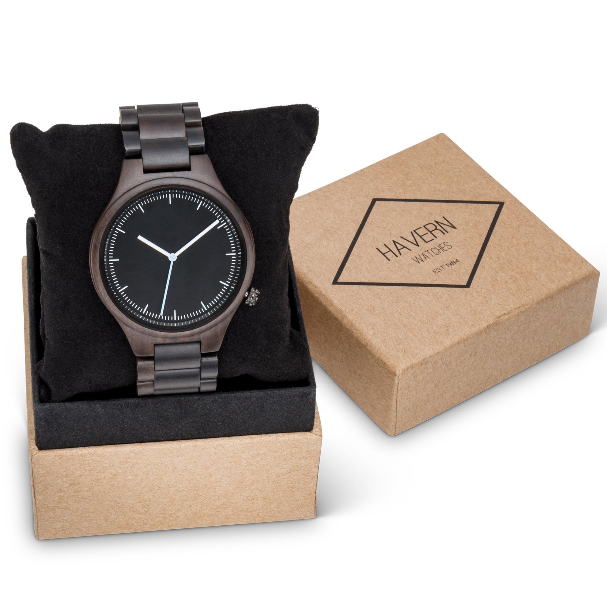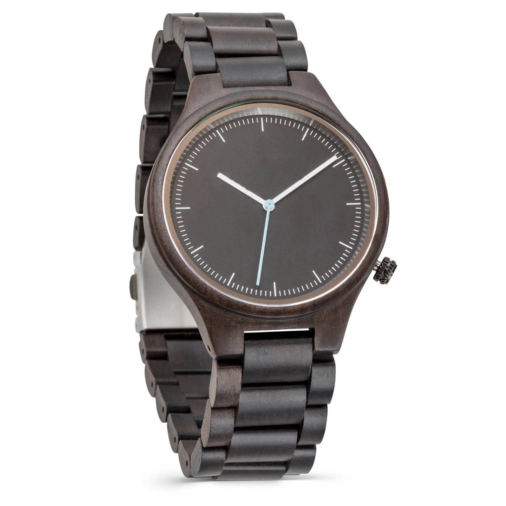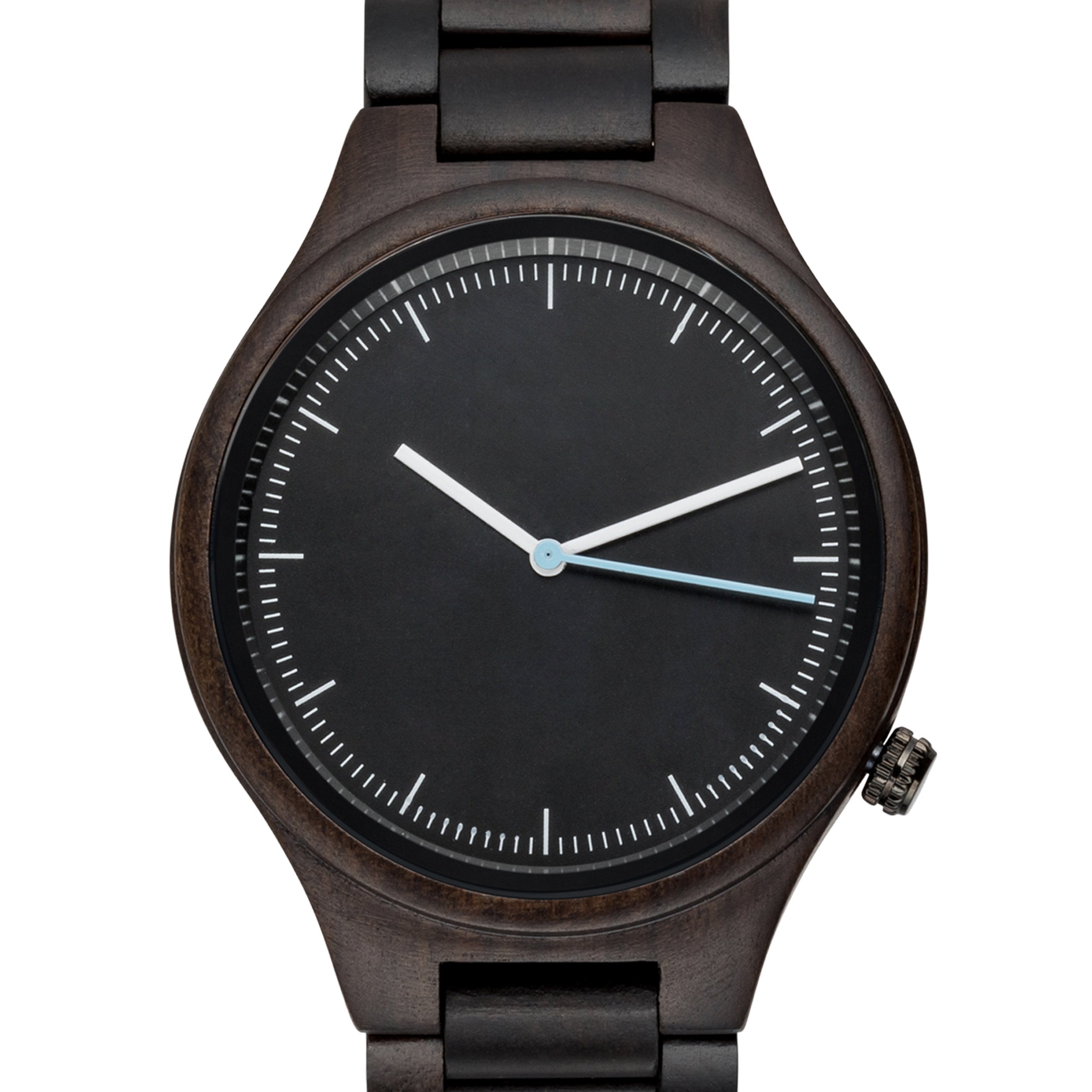 For the man who likes to keep things simple, the Minimalist Ebony wooden watch has paired-down style that's perfect for everyday wear. This unique timepiece features a watch case and matching wood link wristband made from rich black sandalwood. Its style-forward design is matched by superior function: reliable quartz movement and simple dial markers are built for elite performance. Add custom engraving to your Minimalist watch to create the perfect gift for any occasion. For added impact, upload a photo of your handwritten message to make your gift truly unique.